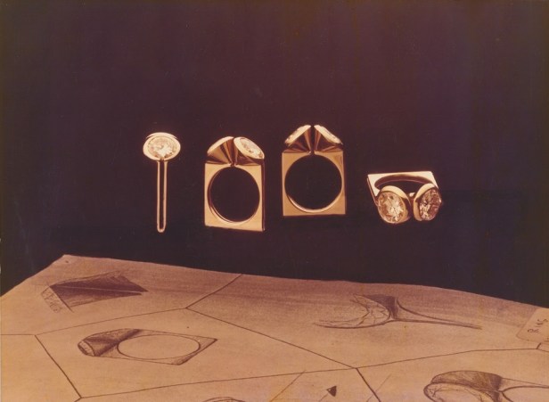 O ancora, la meravigliosa collana in corno biondo e nero e oro, paradigma dei tagli più classici. O l’anello Due coni illuminato da 2 diamanti,grazie al quale Fulvio Maria Scavia si è aggiudicato il primo Diamond Intemational Award nel 1976.