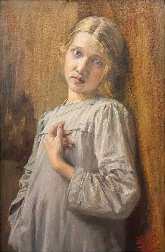 Il dittico dei genitori risale al 1886, quando Simi aveva 26 anni, e attraverso la posa solenne della madre, e quella più pragmatica del padre, riesce ad andare ben oltre la perfezione tecnica della tela conferendo ai soggetti un alone di spiritualità. Volle, rifacendosi al dittico dei Duchi di Urbino di Piero della Francesca, riproporre una “coppia regale”, legata in un’unica cornice.