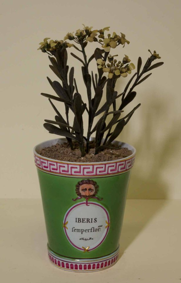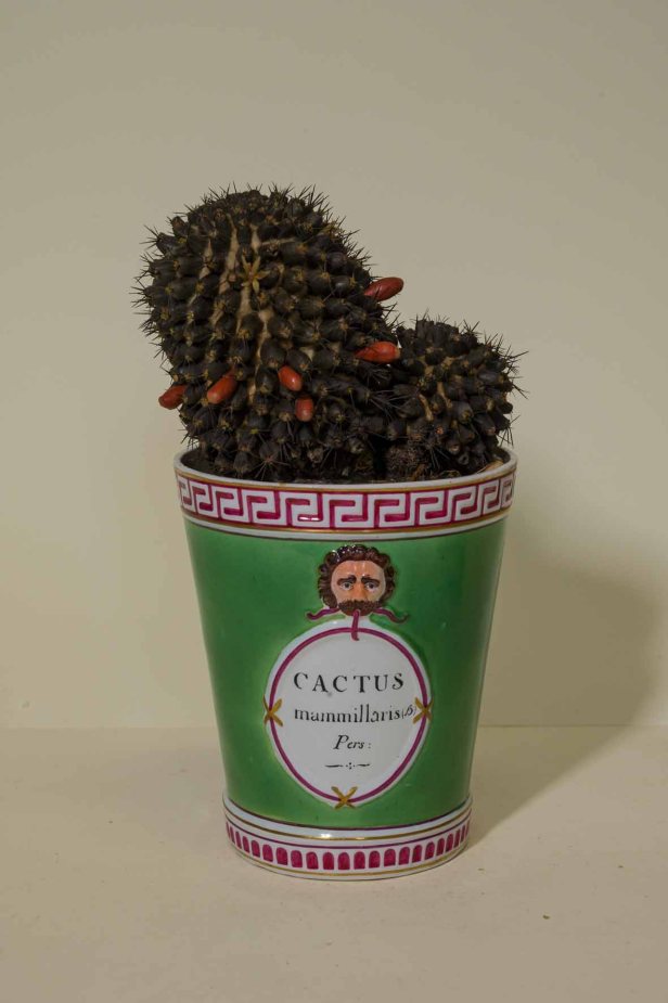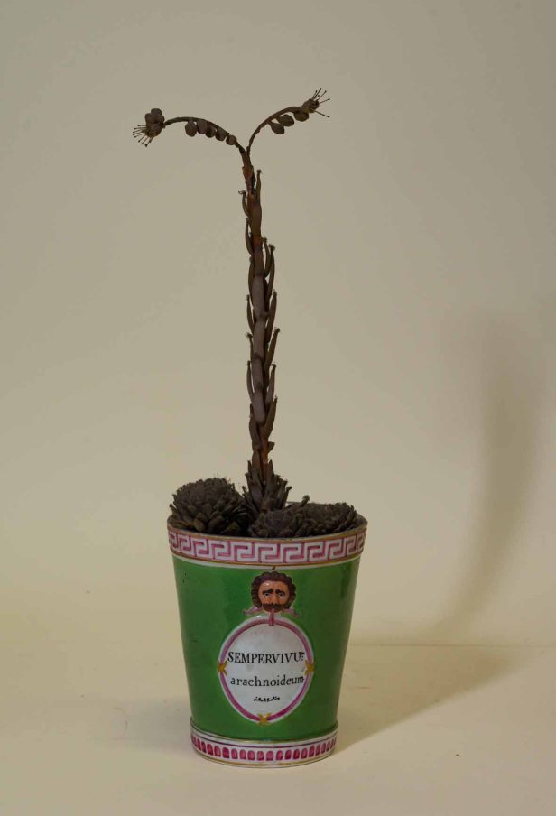 Si ammira, in particolare, la creatività con cui questi artigiani – artisti hanno attinto all’uso dei più svariati materiali per ottenere effetti naturali, come l’aggiunta di un pulviscolo argentato per ottenere la brillantezza della superficie dell’Euphorbia canariensis, l’aggiunta di spine vere nei cactus o il ricorso a leggeri filamenti vegetali, simili alla tela del ragno, per simulare quella sorta di peluria che si trova fra le piccole foglie grasse della Sempervivum arachnoideum.