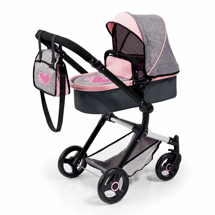 Decorata con cuori, la carrozzina City Doll Pram è completa di borsetta portaoggetti abbinata.