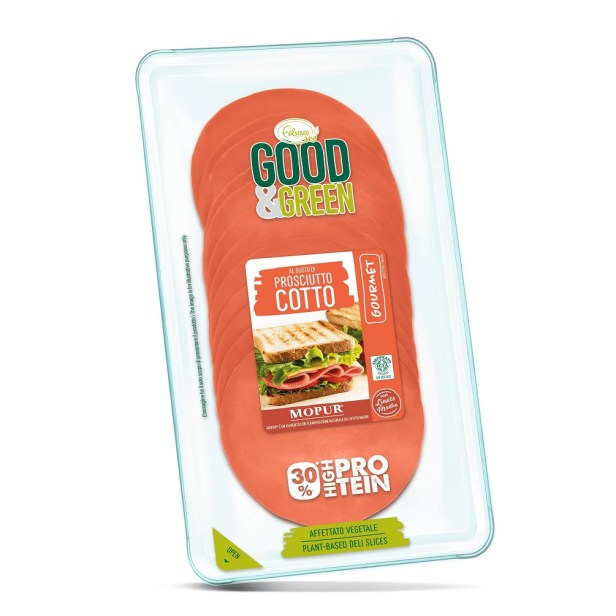 Good&Green al gusto di Prosciutto Cotto, che amplia la gamma “Gourmet” di FelsineoVeg dedicata ai sapori della tradizione, sorprende per il gusto delicato e avvolgente, che piace anche ai più piccoli.