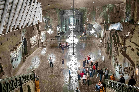 Uno dei luoghi più affascinanti del sottosuolo polacco è la Miniera di sale di Wieliczka, vicino a Cracovia, un vero e proprio gioiello architettonico, una maestosa opera d’arte letteralmente scolpita nel sale e nascosta a centinaia di metri sotto terra. Inserita nella prima lista Patrimonio Unesco nel 1978, è un’enorme città sepolta che ospita gallerie, corridoi, strutture architettoniche, statue, capolavori e numerose sale e spazi – visitabili con un tour guidato – che si sviluppano su una superficie di 7,5 milioni di m3 distribuita su nove livelli, dei quali il più profondo si trova a 327 m sotto terra. Tra le più straordinarie ‘sculture’ realizzate dai minatori, spicca la cappella di Santa Kunegonda (Kinga) di Polonia, lunga 54 m, larga 18 m e alta 12 m, che può ospitare fino a 500 persone: da notare che tutti gli elementi dell’arredo interno sono realizzati in sale.