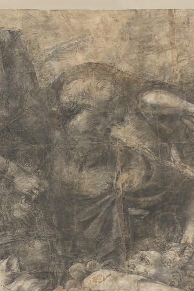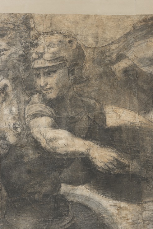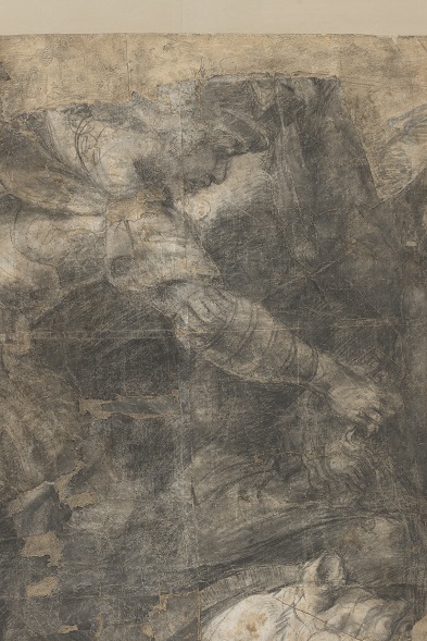 Il frammento del cartone, di cui il restauro ha consentito un’inedita lettura di tutti i valori disegnativi e chiaroscurali, venne impiegato per affrescare il gruppo di soldati che, nella composizione, sono distribuiti a destra della figura di Costantino fino alla corrispondenza del Ponte Milvio.