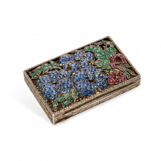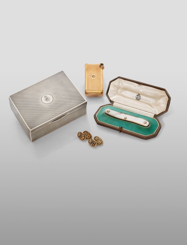Tra gli oggetti più intimi un paio di gemelli in argento dorato colle iniziali di Wallis e Edoardo (lotto 485 – 1.000 Euro) e una bella tabacchiera in argento dorato con rubini, zaffiri e smeraldi incastonati sul coperchio traforato, regalo di matrimonio di Gladys Scanlon a Wallis Simpson che parte da 3.000 Euro.