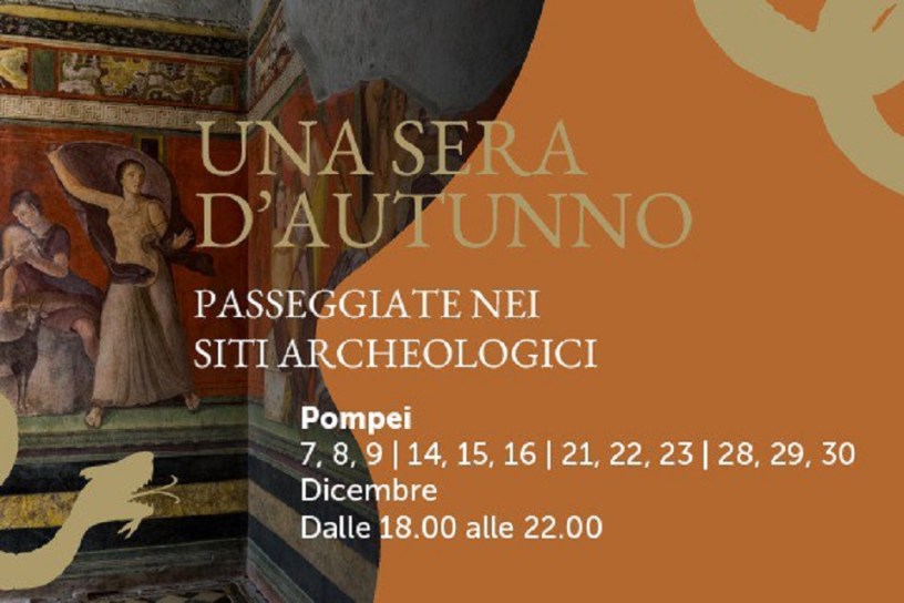 Le sere d’autunno al Parco archeologico di Pompei proseguono nel mese di dicembre con le passeggiate a Villa dei Misteri illuminata e a Villa Regina a Boscoreale, due esempi di ville suburbane con annesse attività produttive.