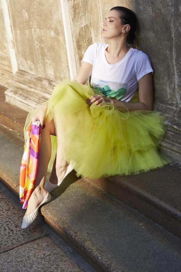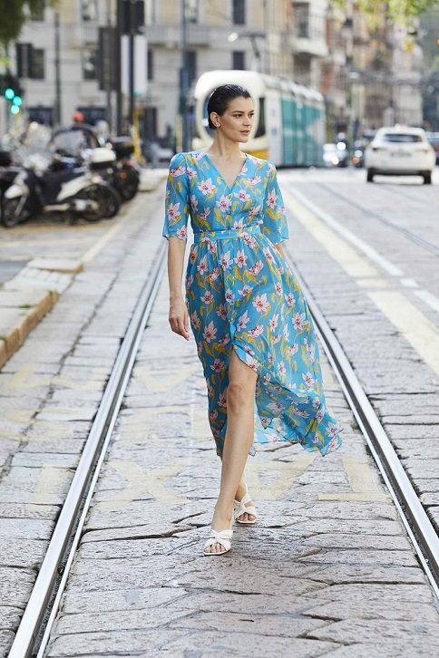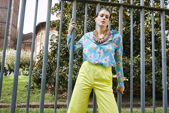 La collezione “ECO” è composta da abiti leggeri e fluidi, completi eleganti, gonne svolazzanti, camicie raffinati e t-shirt con stampe che richiamano la natura.