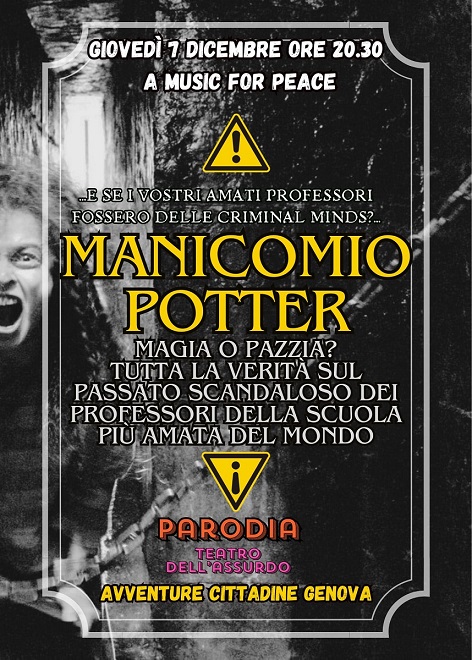 Genova, giovedì 7 e venerdì 8 dicembre presso il Castello Segreto di Music for Peace in via Balleydier 60, i professori della scuola di magia più amata del mondo di Avventure Cittadine Genova e Genova Dreams aps, vi attendono per due giorni indimenticabili: con una missione quella di raccogliere una camionata magica di beni di prima necessità per maghi e streghe meno fortunati.