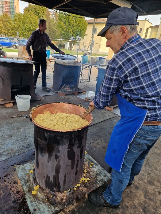 Il fuoco dei paioli accenderà ancor di più il calore delle feste. La pietanza fumante tipica del nord Italia verrà preparata con maestria negli appositi pentoloni di rame, come si faceva una volta, dai polentieri di Storo. I professionisti provenienti dal comune trentino cucineranno il loro cavallo di battaglia, la “polenta carbonera” (farina gialla di Storo, burro di malga, spressa di malga stagionata, spressa di malga tenera, Trentingrana, pasta di salame, vino e pepe) insieme a molte altre specialità. Questo piatto riunirà le compagnie di amici e parenti, in occasione del periodo festivo. È infatti lo spirito natalizio ad accompagnare questa edizione della Sagra della Polenta, ospitata per la prima volta a Peschiera Borromeo nel Villaggio di Natale e patrocinata dal Municipio.