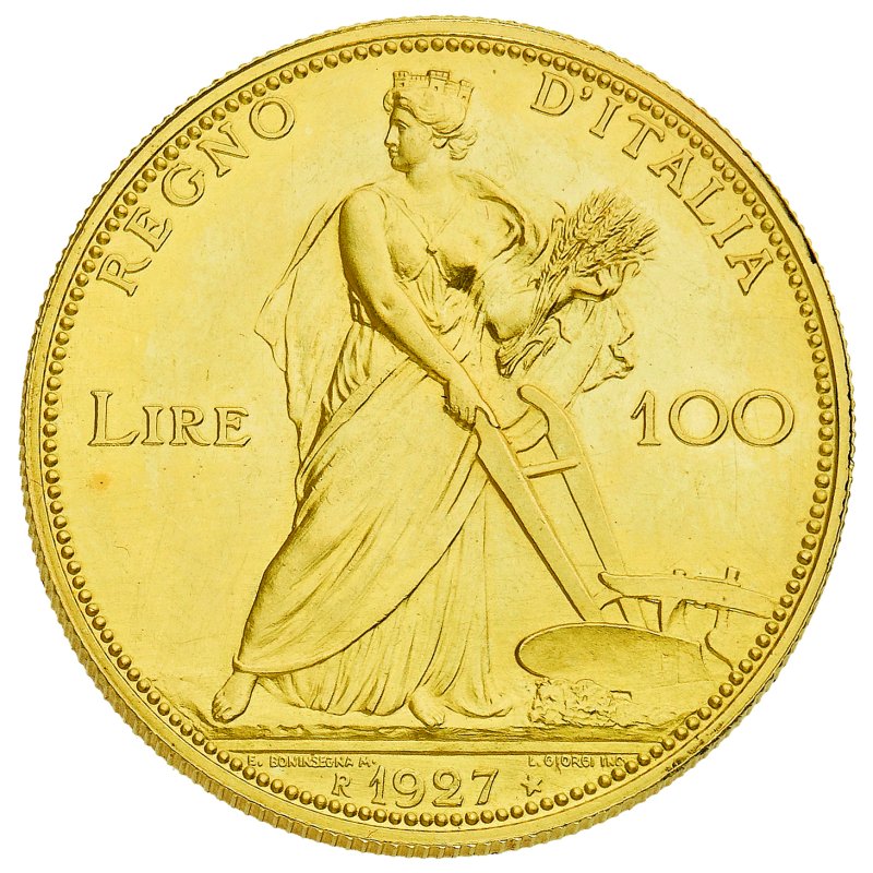 Il lotto 1161 (in foto) è il Top Lot di questa asta numismatica. Ancora 100 lire, in questo caso del 1927, coniate solamente in 30 esemplari esclusivamente per i collezionisti. Questo la rende oggi tra le monete più ricercate anche a livello internazionale. Riporta sul dritto l’effigie del Re Vittorio Emanuele III e sul rovescio un’allegoria dell’Italia agricola con aratro e fascio di spighe. Da qui la definizione 100 lire Aratrice. La base d’asta è di 50.000 Euro.