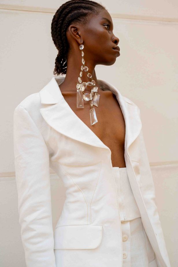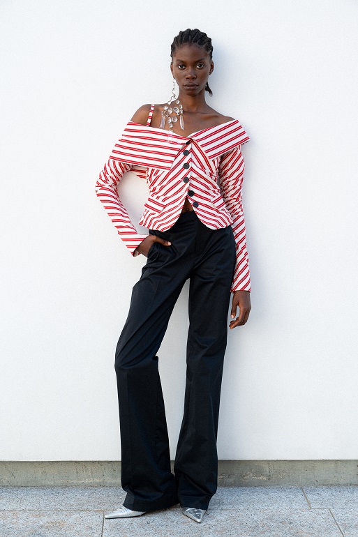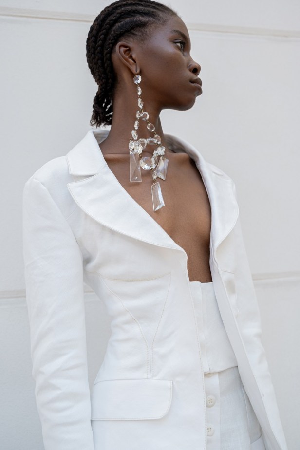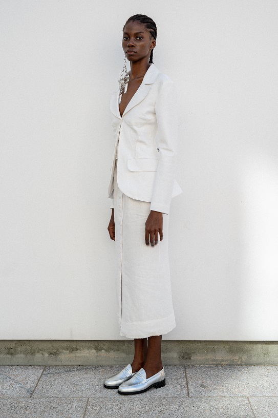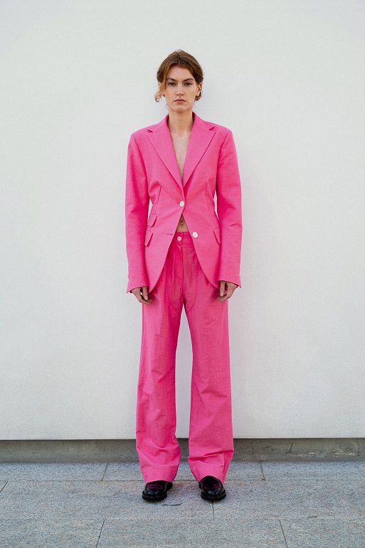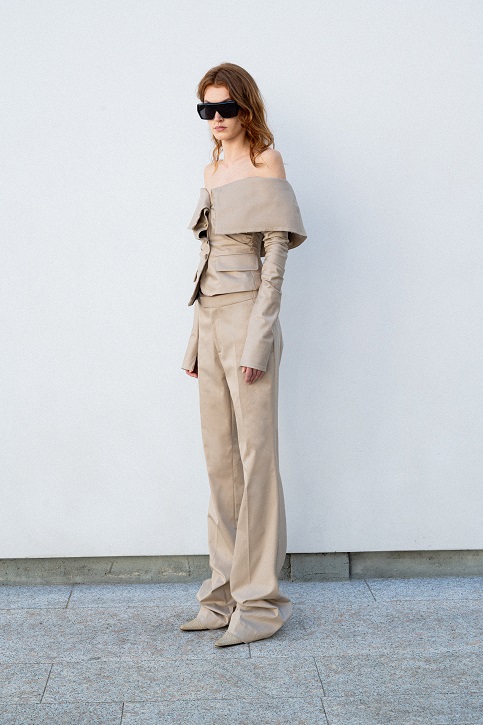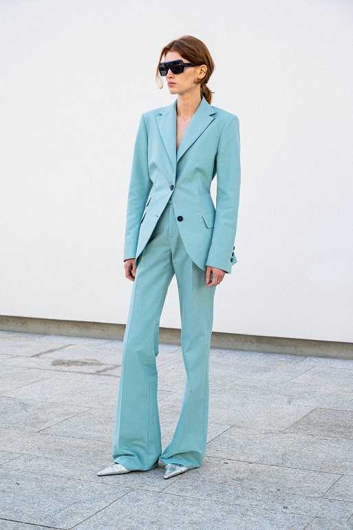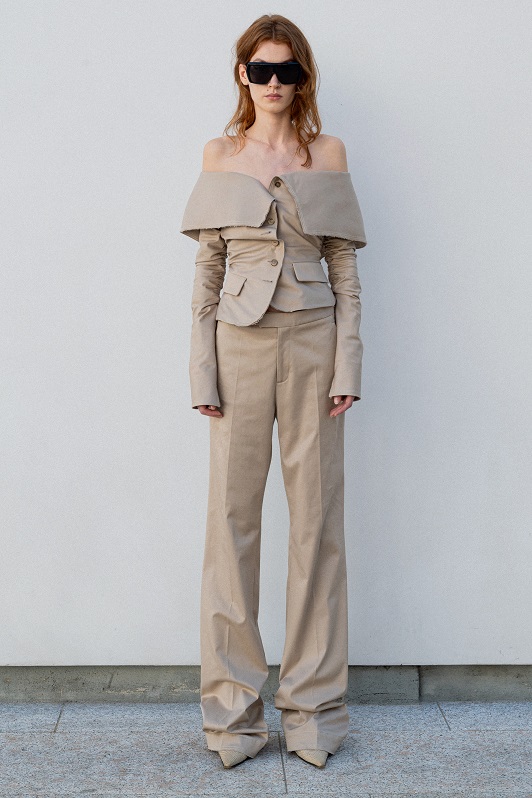 Tuttavia, rimane ancorata alla contemporaneità grazie all’integrazione di elementi maschili come le giacche safari da uomo e i blazer strutturati internamente con la tecnica del moulage.