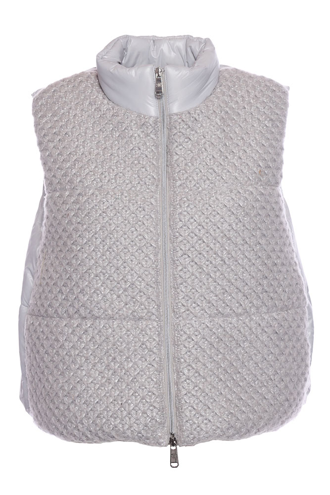 Maglia e gilet imbottito non sono una coppia strillata né vistosa: sono due tipi sofisticati, che sprigionano rigore e splendore. Sono plasmati secondo un’estetica moderna ed essenziale, avvolgono attraverso l’intreccio sapiente di filati preziosi e caldi.