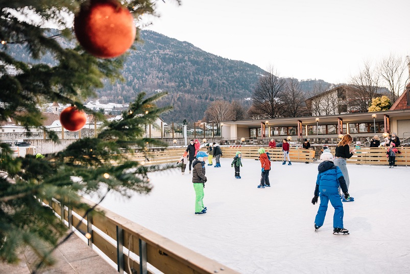 La pista di pattinaggio sul ghiaccio: aperta tutti i giorni dalle 14.00 alle 18.00 sulla piazza delle feste di Lagundo.
