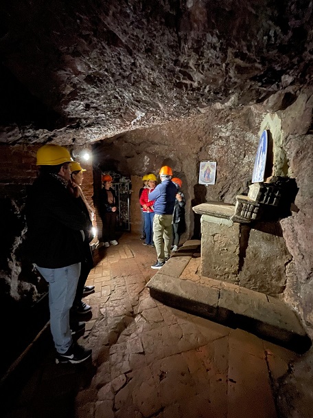 Si può scegliere il tour adatto a tutti e dedicato al Parco minerario o quello, più “coraggioso”, che prevede una visita alla discenderia della miniera, fino a circa 100 metri di profondità. Per i gruppi c’è anche l’itinerario di interesse storico-naturalistico, che condurrà i viaggiatori al primo parco eolico di proprietà pubblica, sulle colline che si affacciano sulla miniera a circa 600 metri, con una tappa alla diga di Muraglione, un complesso di sbarramento delle acque necessarie per il lavaggio del minerale estratto, riaperta al pubblico da aprile 2023 e inserita in un bellissimo habitat naturale. In questo percorso si potrà visitare l’Oratorio di Santa Barbara, dedicato alla patrona dei minatori. Al suo interno si trova la tela della Madonna di Guadalupe, preziosa opera del pittore messicano Juan Rodríguez Xuárez.