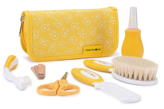 Con un occhio rivolto ai periodi di vacanza, il set igiene That’s Love Winnie The Pooh diventa indispensabile e da portare ovunque. All’interno tutto il necessario per la cura del bambino, dallo spazzolino alla spazzola con morbide setole e il pettine, dalle forbicine per le unghie alla limetta fino allo spray nasale.