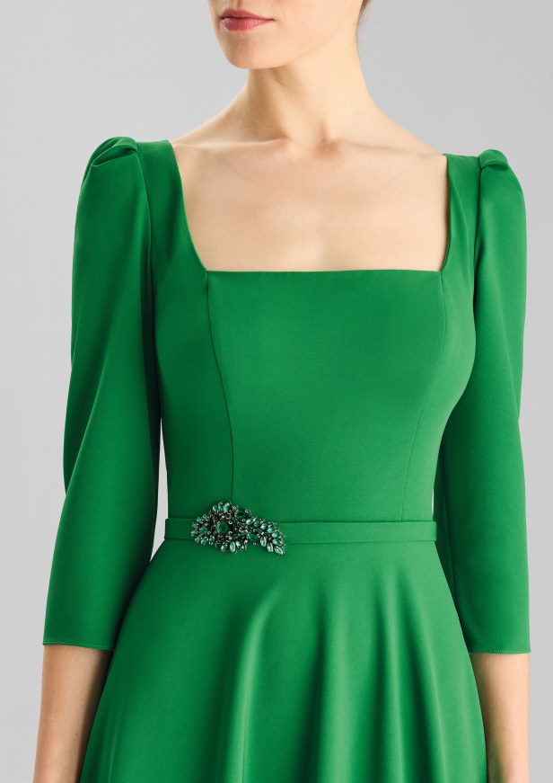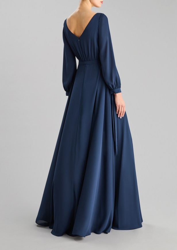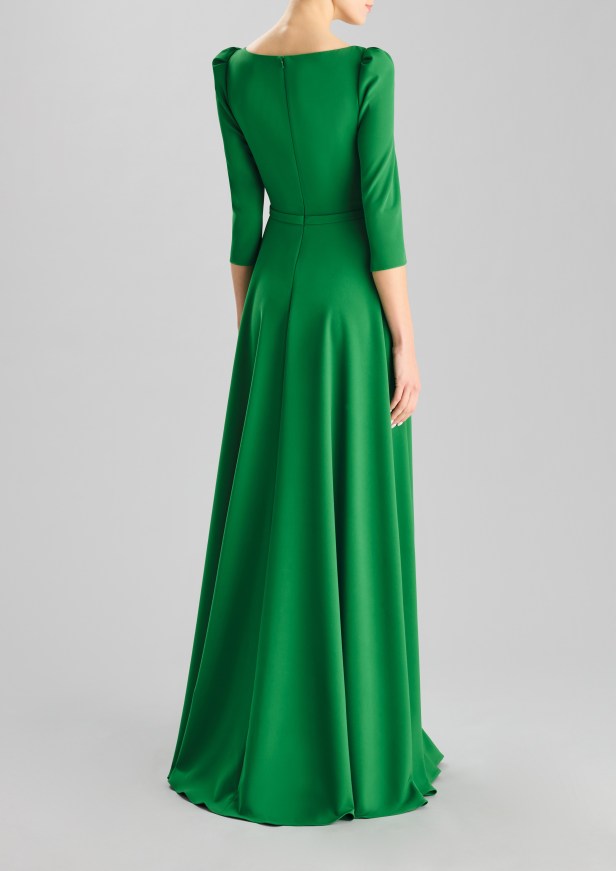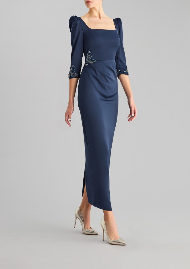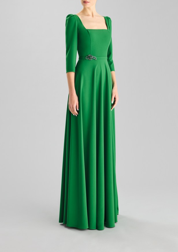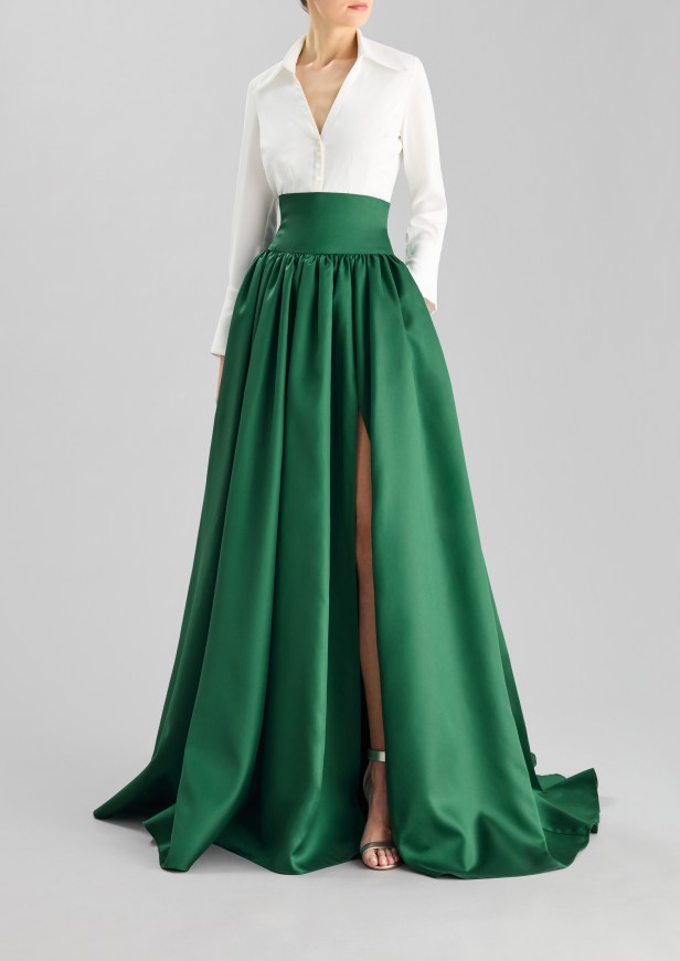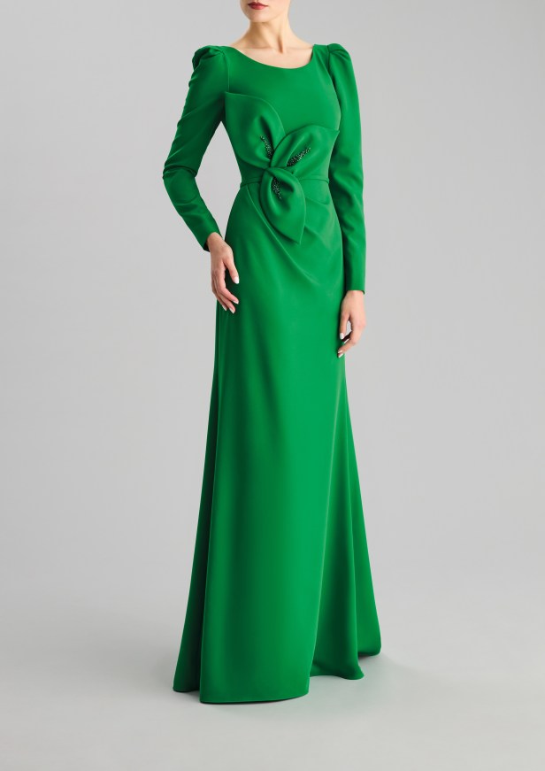 Le opzioni più sobrie privilegiano la simmetria, l’eleganza e la delicatezza dei dettagli, con spacchi a metà polpaccio o al ginocchio per garantire movimento e grazia, moderne scollature quadrate ed eleganti scollature a bateau, maniche a tre quarti per un tocco di formalità, rifinite con perline sobrie ma scintillanti, innovativi design dei coprispalle e abbellimenti all’avanguardia.