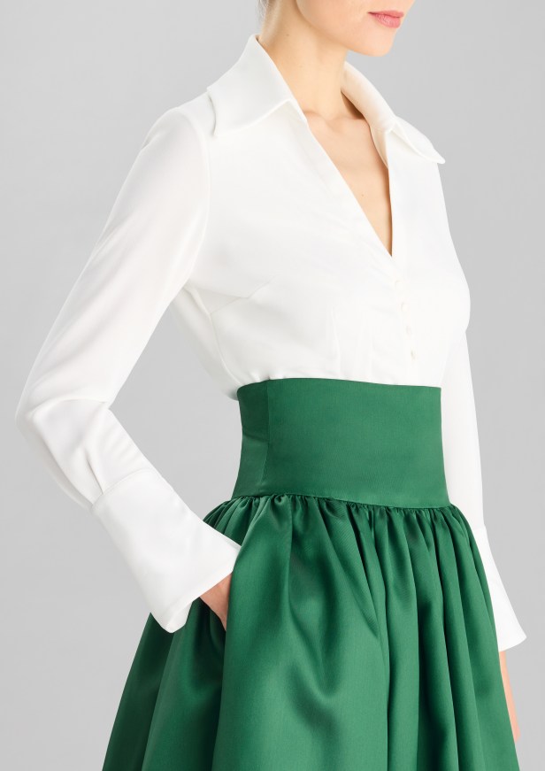 Raso dal taglio retrò – Setoso e scivoloso, con una strizzata d’occhio agli slip dress degli anni ’90, ma più fluido e con dettagli moderni. I modelli d’archivio sono rinnovati con particolari e tessuti più attuali.