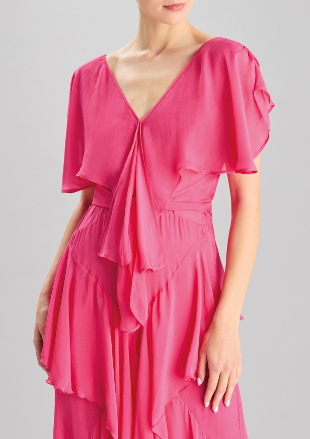 Con opzioni che spaziano da elettrizzanti abiti romantici a fluenti capi femminili, questa linea è l’ideale per festeggiare con stile. Chiunque sia alla ricerca di uno splendido abito da indossare a un matrimonio o per un’occasione speciale troverà l’abito perfetto in questa collezione.