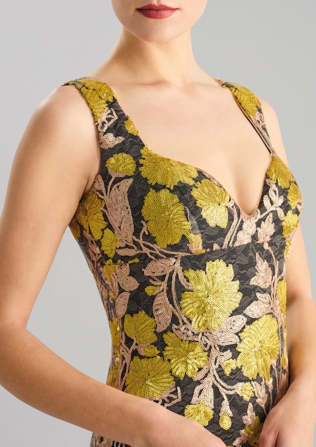Scintillio e lucentezza – Con una gamma che spazia da scintillanti punti luce in perline a scintillanti paillettes all-over, questi abiti da festa sono ideali per ballare e distinguersi tra la folla.