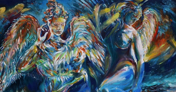 Gli Eternals descritti dall’arte di Vespasiani si collocano in un territorio personale quanto inaspettato, dove la monumentalità delle figure si rapporta ad una pittura che sembra smaterializzare la forma, in cui le tonalità rendono oniriche anche le scene più cruente. In queste opere la spiritualità e la devozione hanno un peso determinante, anche per comprendere le contraddizioni e i disorientamenti della nostra epoca, sempre più distante del senso del sacro, della tradizione e dunque dal legame con le origini.