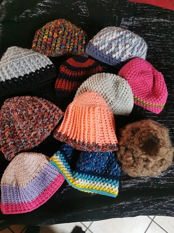 “Sferruzzando, ho creato dei cappellini glamour che grazie ad un mix di colori e a texture diverse tra loro non passano assolutamente inosservati; il berretto si presta sia per un look sporty che chic, mantenendo quell’aria daily ma leggermente snob. Al cappello, su richiesta, si possono abbinare pon pon in maglia, ecopelliccia o visone (che in realtà sono una spilla, applicabile anche come enrichement della cloche) oppure delle composizioni floreali”.
