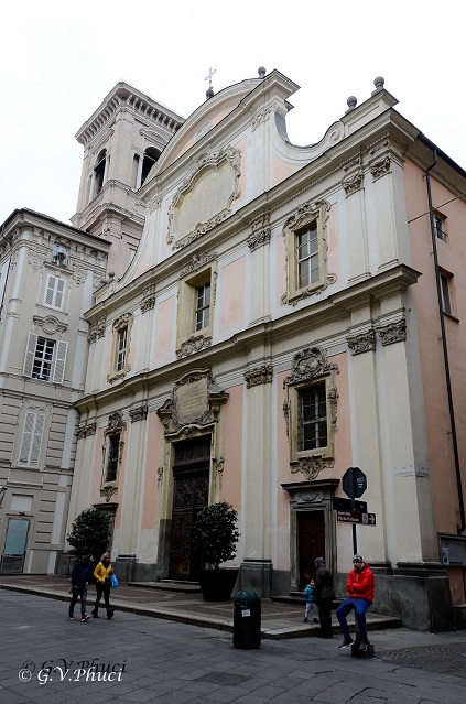 Al fondo della navata di sinistra si ha una Deposizione di Giovanni Antonio Molineri, documentata nella chiesa dal 1636. Nella prima campata di destra si conserva invece l’antico fonte battesimale. L’affresco sovrastante datato 1885 è di Francesco Gonin. Di notevole pregio è il pulpito di marmo di Carrara che reca l’effigie del parroco Filippo Montuoro a ricordo della grandiosa opera di rinnovamento dell’edificio. L’altare è sormontato da un baldacchino di marmo retto da quattro colonne. Nella navata destra si apre la cappella di San Paolo, strettamente legata alla presenza barnabitica nella chiesa. Nella cappella una vetrata sormonta l’altare di marmo intagliato; in essa sono raffigurati, accanto a San Paolo, San Carlo Borromeo, che per primo ha dimostrato fiducia nell’operato di Sant’Antonio Maria Zaccaria, e San Francesco di Sales, nel carisma del quale l’ordine si riconosce in maniera particolare. La quarta cappella è intitolata a San Leonardo Murialdo, essenziale aiuto ai giovani operai di una Torino che, nella seconda metà del XIX secolo vede crescere in maniera esponenziale il suo sviluppo industriale.