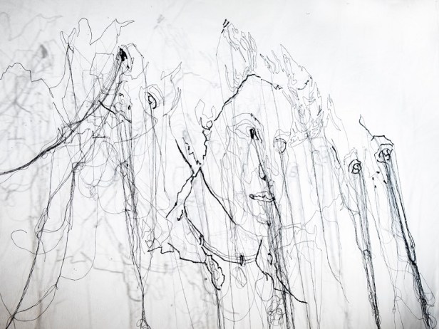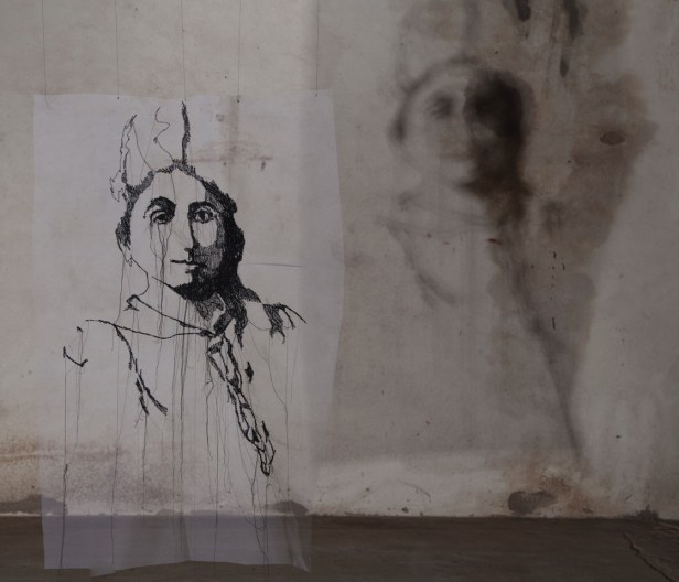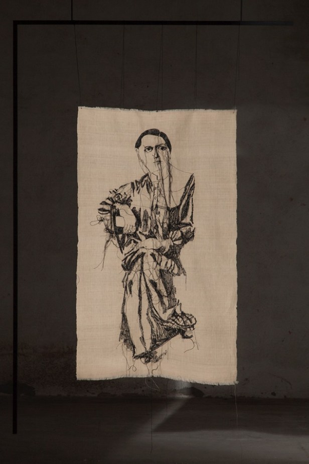 Quello che inaugura alla Raccolta Lercaro è l’ultimo allestimento, in ordine di tempo, di un progetto nato da una ricerca dell’artista iniziata nel 2012 – e tuttora in fieri – con il censimento delle fotografie dei volti di una sezione inagibile del Cimitero Monumentale di Ravenna che comincia a ritrarre a mano libera con la sua macchina da cucire – una pesante Bernina modello 1008 meccanico a pedale elettrico – per salvarli dall’oblio.