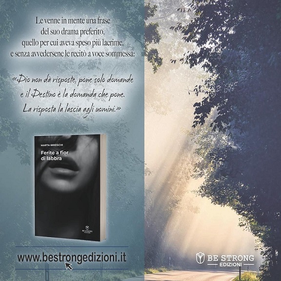 “Ferite a Fior di Labbra” è stato selezionato inoltre per partecipare alla Vetrina di Casa Sanremo 2024 dove sarà presentato il 7 febbraio prossimo e nello stand di Be Strong Edizioni alla Fiera Internazionale del Libro di Torino a maggio 2024.