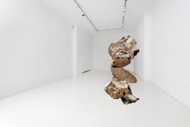 La stratificazione citata nel titolo del progetto espositivo allude alla struttura di talune opere realizzate tramite la sovrapposizione, manipolazione, compressione e piegatura di carta e fibre naturali, a emulazione di quei processi meccanici di formazione che si ritrovano in natura, e al contempo al concetto di archivio ad esso correlato: le sculture racchiudono nei propri volumi “storie di gesti, di tempo, di animali, di piante” come risultato di una contaminazione profonda tra gli elementi.
