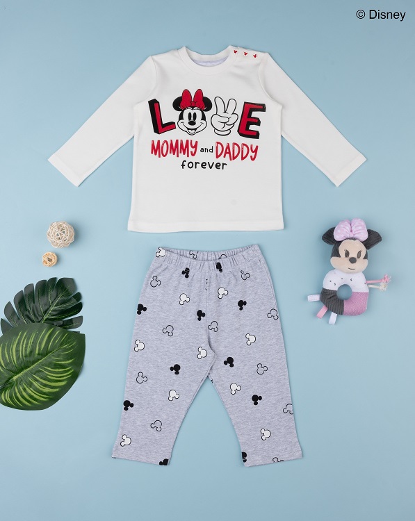 Nelle versioni per i bambini (3 mesi – 6 anni) spicca la tenera stampa “love” accompagnata da Mickey Mouse nel taglio maschile e da Minni in quello femminile.