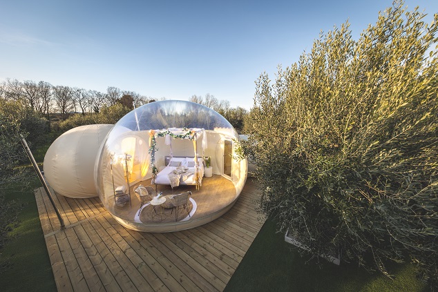 Vivere un momento indimenticabile all’interno di una suite esclusiva che garantisce intimità e comfort, immersa nella bellezza rigogliosa della natura. Sorprendere la propria metà con un weekend originale significa trascorrere momenti di relax, lontani da tutto e tutti, in un’atmosfera romantica e rarefatta, per riscoprire quell’intimità che spesso la vita quotidiana non permette di vivere appieno. Un calice di vino, le foglie mosse dal vento, il suono delle onde del mare… tutto contribuisce a creare un’atmosfera magica per addormentarsi sorridendo, avvolti l’uno nell’altro sotto le stelle. Nella settimana di San Valentino, il Relais Antico Pordere San Francesco si prepara a sorprendere gli ospiti con la sua Bubble Suite: una camera dalle pareti trasparenti, immersa nella natura toscana a pochi passi dal mare. Qui, ci si può sentir “isolati” e protetti, pronti a rilassarsi e coccolarsi sotto un cielo stellato che fa da cornice a un’esperienza unica.