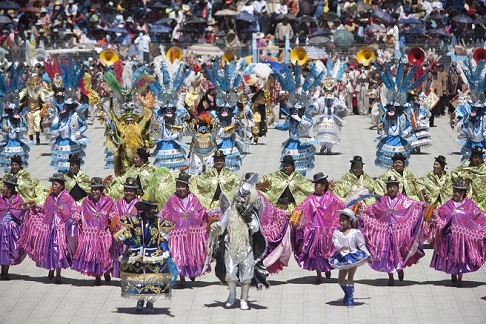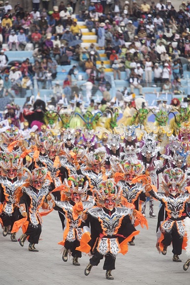 Nel pomeriggio, la gente si riunisce fuori dalla chiesa di San Juan Bautista in attesa della tradizionale processione della Vergine: durante il percorso, che attraversa le strade e i viali principali, molte famiglie consegnano foglietti con preghiere al loro santo patrono. Uno dei momenti più importanti della festa si svolge allo stadio, dove prendono il via due importanti gare di ballo trasmesse in televisione. La celebrazione continua poi con una sfilata tradizionale in cui si sfidano circa 150 gruppi folcloristici composti da membri delle etnie quechua e aymara provenienti da tutta la regione. Questa festa per via della sua importanza è stata riconosciuta come Patrimonio Culturale Immateriale dell’Umanità.