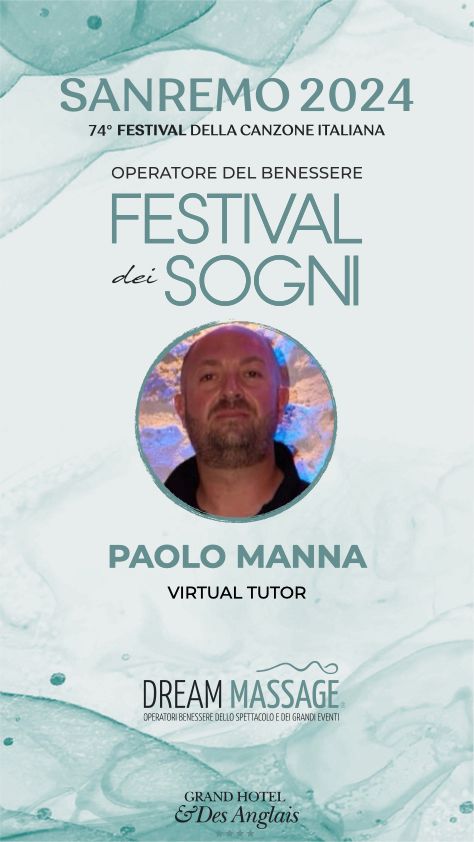 Paolo è una delle eccellenze italiane del mondo del benessere, ed è stato a Sanremo già per diverse edizioni. Dapprima come allievo e poi come tutor per due anni consecutivi nell’edizione Sanremo 2022 e 2023.
