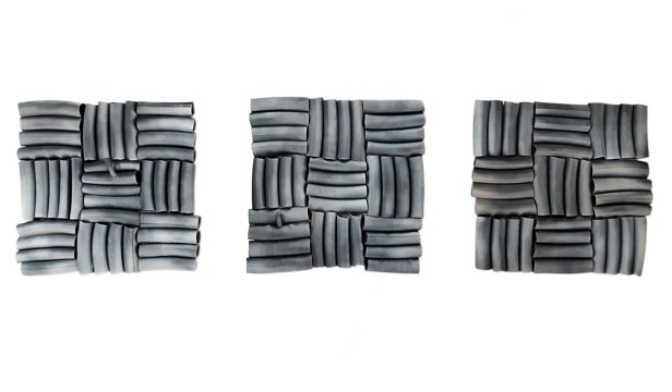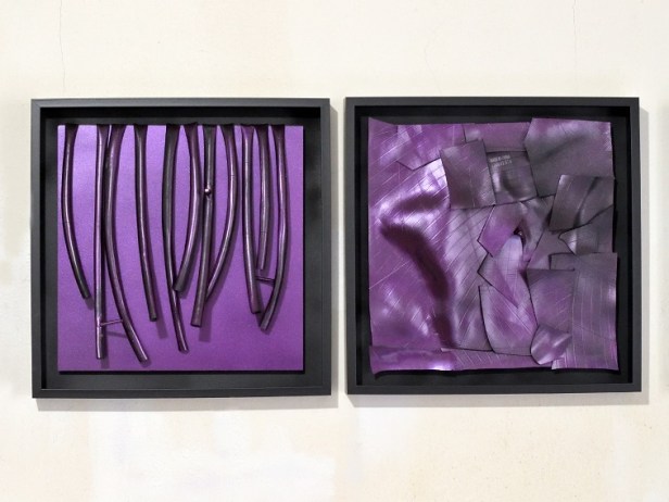 Scrive, e la ringraziamo per il suo prezioso contributo, Denise Sardo, critica d’arte e curatrice indipendente: “Immaginate uno studio, una casa dei primi anni del secolo scorso, pareti antiche e porose illuminate dalle luci dei neon, l’odore chimico del colore è smorzato dall’umido verde del giardino incolto su cui si affaccia la stanza. Un artista esegue sottili variazioni plastiche, trasformando pneumatici e camere d’aria in strumenti musicali vibranti. La musica è quella prepotente degli anni Settanta che graffia i pensieri. La tensione superficiale della materia si fonde con l’energia della musica. Paolo Greco si muove deciso nell’atmosfera del suo studio, tra ricordi ingombranti e tensione al futuro, dà forma al suo pensiero imprimendolo sulla gomma.
