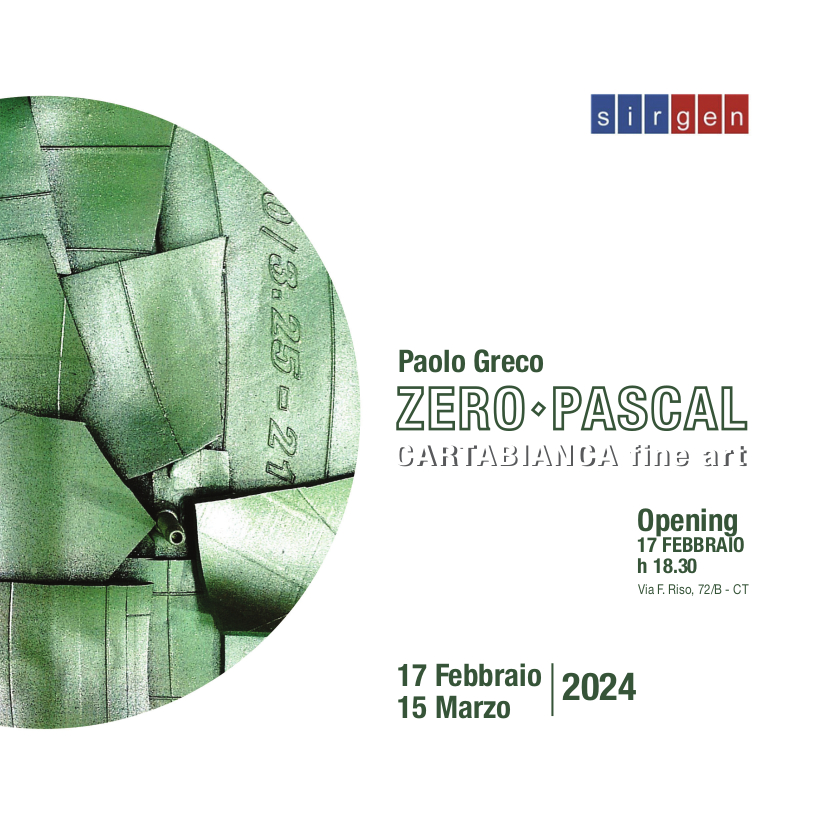 Sabato 17 febbraio, alle ore 18,30, sarà inaugurata “Zero Pascal”, la mostra personale di Paolo Greco che, per la prima volta, espone i suoi lavori alla galleria Carta Bianca a Catania.