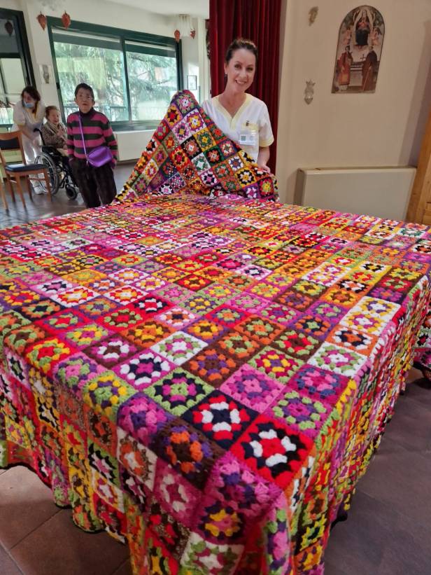 Settecento mattonelle colorate, in lana riciclata, realizzate delle mani delle nonne. La prima creazione in crochet di questo 2024, realizzata all’uncinetto dalle residenti della CRA Villa Giulia, è una coperta matrimoniale. Un’opera di creatività e sostenibilità in linea con i trend che la residenza diretta dalla dott.ssa Ivonne Capelli, porta avanti dal primo anno della pandemia per fare del bene agli anziani e al prossimo. Il ricavato della coperta, così come di ogni manufatto in crochet, è infatti dato in beneficenza.
