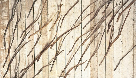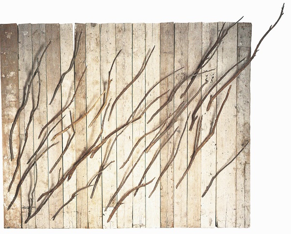 Il percorso prosegue al piano superiore con una disamina focalizzata sui quadri di materia, cui l’artista si dedica dalla fine degli anni ’70. Le forme e colori del legno, spesso non lavorato, sono nuovamente protagoniste di opere come La Foresta Analoga, Pier Delle Vigne, Prova d’Orchestra e Inferno, che coniugano arbusti, tronchi e ramoscelli nella costruzione di sagome geometriche che eludono la bidimensionalità del dipinto e rivelano una costante cura nella lavorazione dei materiali.