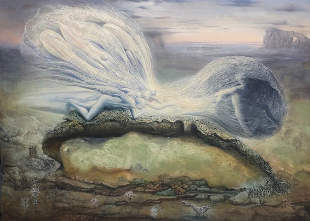 Agostino Arrivabene offre uno sguardo intimo nella sua interpretazione del significato dei sogni e delle sue visioni. Le opere esposte nella mostra diventano un mezzo con cui gli spettatori possono esplorare la propria psiche, intraprendendo un viaggio attraverso dimensioni iperuranie e simboliche fortemente influenzate dalla sua prospettiva mistica e dalla sua sensibilità artistica unica.