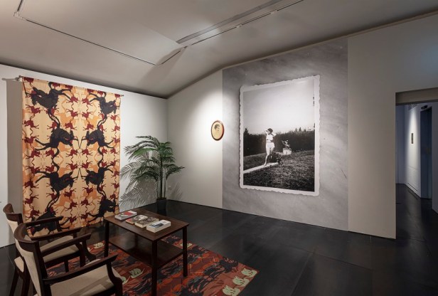 Per Unsettling Genealogies l’artista ha realizzato un’installazione che si ispira al palcoscenico raffigurato nella fotografia dell’inaugurazione della Terza Mostra del Cinema di Venezia del 1935.