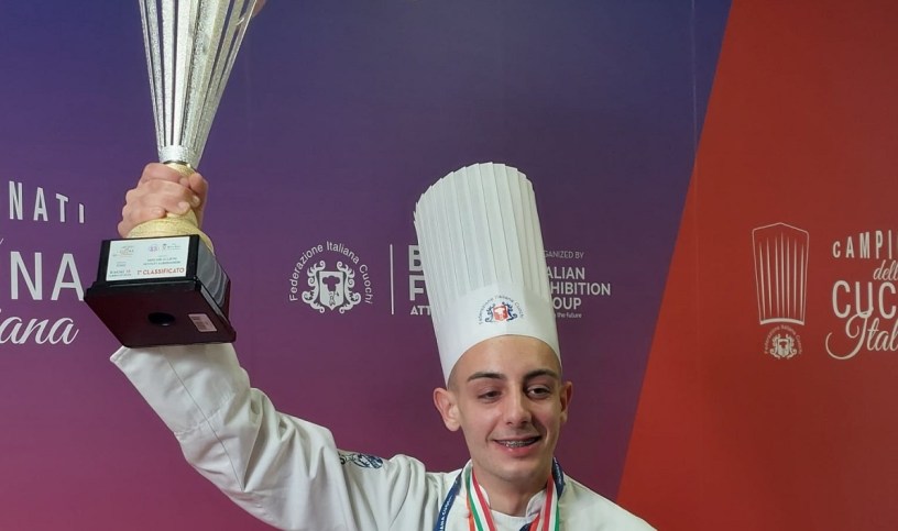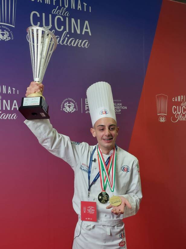 Arriva da Bari ed è stato eletto a Rimini nell’ambito dei Campionati della Cucina Italiana FIC 2024 grazie alla sua ricetta dal titolo BACCA-TRA. Alessandro frequenta il quinto anno dell’Istituto Armando Perotti nel capoluogo pugliese.