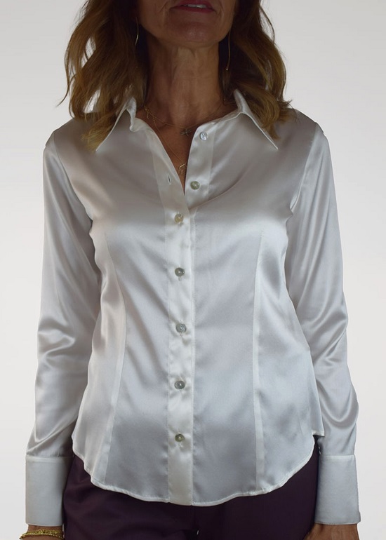 Camicia classica in seta: un must have per la moda femminile milanese, una camicia in seta stretch professionale e confortevole, perfetta per giornate intense, da indossare in ufficio e a cena fuori.