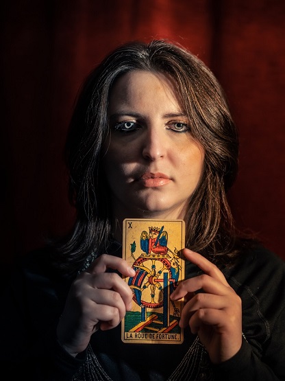 L’autrice si pone come io narrante, indagando questi concetti attraverso la metafora della ‘Ruota della Fortuna’, nel suo aspetto legato agli Arcani maggiori dei Tarocchi.