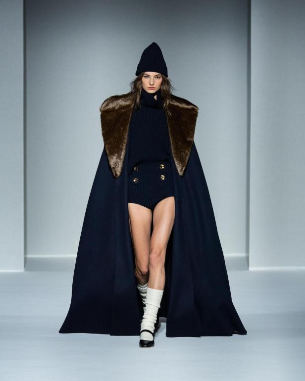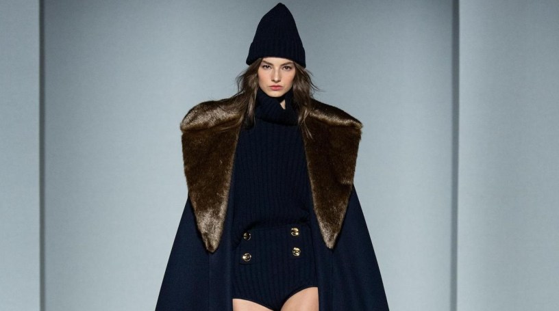 Una femminilità viaggiatrice, che in questa collezione declina ogni sfumatura di magia marina fra cappe e cappotti con colli staccabili in eco-pelliccia, abiti in maglia, long dress principeschi, un universo di giacche dal taglio impeccabile.