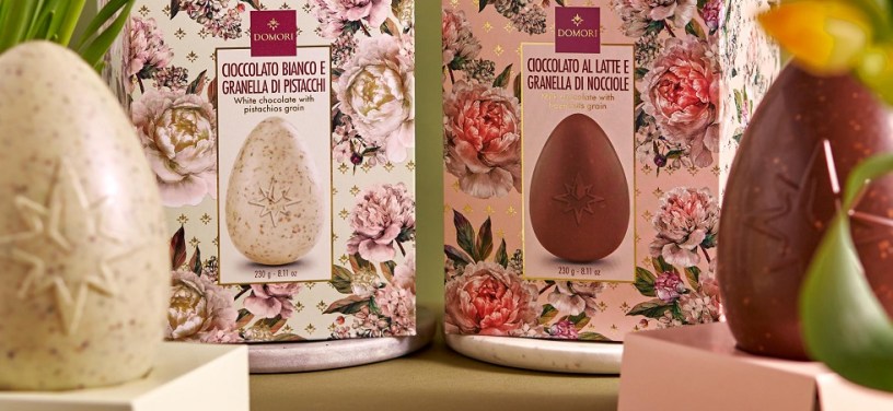 La collezione 2024 è la più varia e ricca di sempre tra le Pasque Domori. Ben nove deliziose varianti di uova di cioccolato, cui si aggiungono quattro golose ricette di ovetti – fondente crema di cacao, latte ripieno gianduja, latte ripieno pistacchi e sale, latte ripieno cremino.