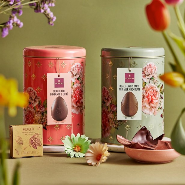 Anche sul lato “sorprese” all’interno delle uova, Domori introduce due belle novità: la partnership con Carioca, per le matite per i più piccoli, e la partnership con Ethical Grace, marca specializzata in cosmetici green, che firma i regali per le uova nelle latte.