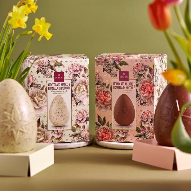 La qualità assoluta del Cioccolato Domori viene esaltata in tante originali interpretazioni e valorizzata dalle confezioni, dall’incantevole grafica floreale, in cui raffinate illustrazioni di peonie si inseriscono su uno sfondo dalla tonalità pastello.