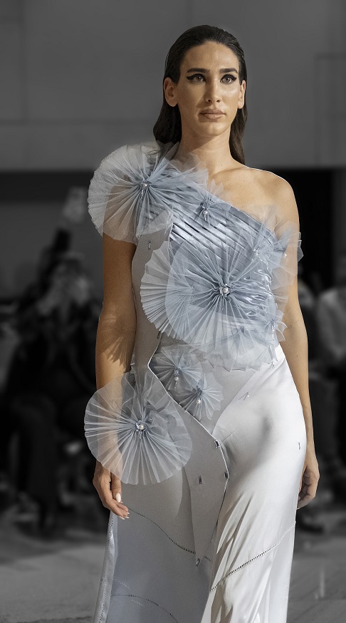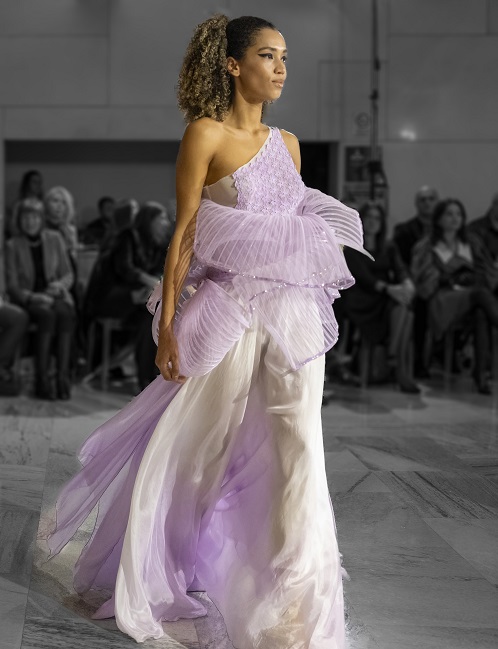 La designer che ha aperto la serata con i propri capolavori in passerella è stata Margarita Kola, albanese con 30 anni di esperienza, la quale inizia la propria carriera fin da piccola, figlia d’arte, provenendo da una famiglia di sarti e crescendo tra forbici, ago e filo. All’età di 22 anni si trasferisce in Grecia, ove subito inizia a lavorare per i grandi stilisti, nel settore produttivo ed i suoi lavori si sdoganano in tutto il mondo. Negli ultimi cinque anni ha aperto un proprio atelier in Grecia sotto il brand denominato “Atelier Margot”, specializzato in abiti da sposa e da sera, continuando anche a produrre per altri colleghi stilisti e designer. Vive in Italia da poco tempo, eh ha trasferito il suo brand a Cuneo, ove vive ed ha già ha aderito a precedenti sfilate di Aps Showteam.