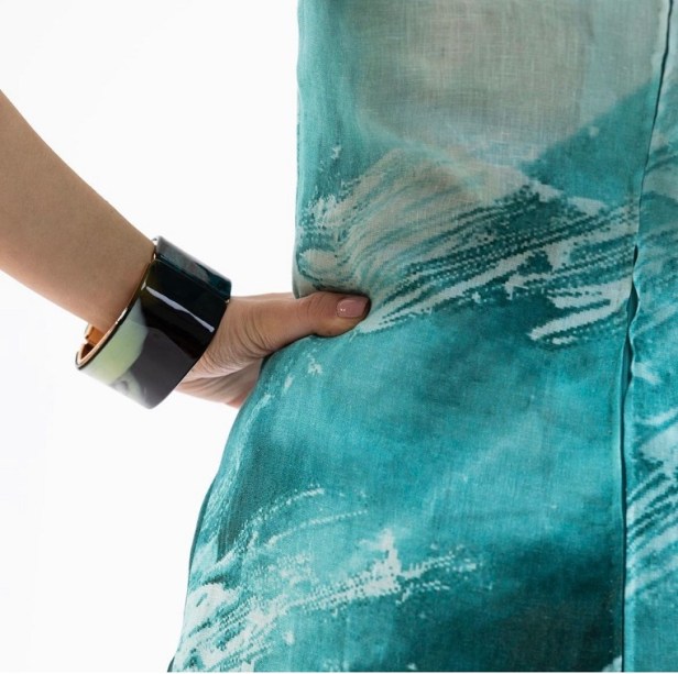 Un occhio attento anche alle nuove tecniche artigianali con Elementi Naturali, le sue stole ed accessori realizzati con stampa botanica e nuove ispirazioni artistiche per IColoridi che dopo le sue originali lampade ci propone le nuove collezioni di borse in pelle dipinte a mano.