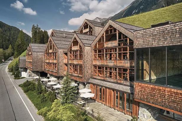 Il bellissimo resort a 5 stelle, ultima creazione di design di una famiglia di albergatori titolare di altre strutture della zona, è perfettamente incastonato nella natura e si trova in un comprensorio che comprende tre valli: la Val Ridanna, la Val Racines e la Val Giovo.