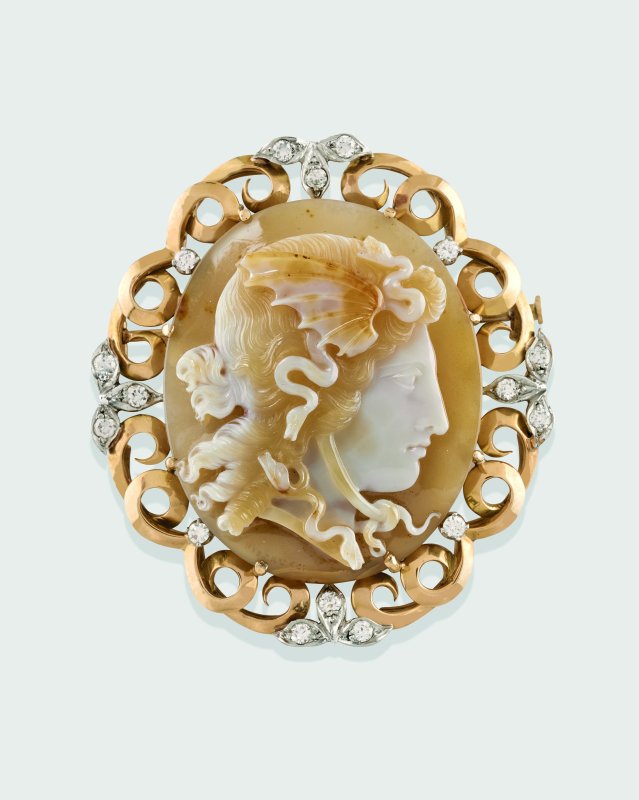 Per appassionati collezionisti si segnala il cammeo in corniola di Benedetto Pistrucci (lotto 203), con montatura oro bicolore e diamanti, che raffigura il profilo di Medusa con il capo ornato da ali di pipistrello e serpenti annodati sotto la gola. Un cammeo con Medusa dello stesso autore è conservato al Metropolitan di New York. Per aggiudicarsi quello all’incanto da Aste Bolaffi bisogna offrire almeno 5.000 Euro.