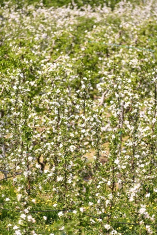 La coltivazione della mela è un’attività che si tramanda di generazione in generazione e domina i versanti fino a 900 metri, estendendosi principalmente nei comuni di Chiuro, Ponte in Valtellina, Bianzone, Villa di Tirano, Sernio e Lovero. Quando scoppia la primavera i meleti regalano uno spettacolo che coinvolge tutti i sensi: i fiori di questa pianta hanno sfumature che vanno dal bianco e rosso e il contrasto che si crea con il verde delle foglie e l’azzurro del cielo quando sbocciano stupisce tutti i passanti. Inoltre, il loro profumo regala una ventata di freschezza.